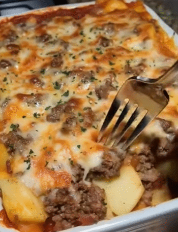 This Hearty Meat & Potato Bake is a comforting, family-style casserole layered with seasoned ground beef, tender potatoes, onions, and …