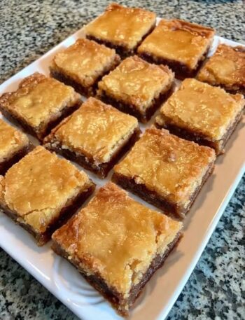 - Lay the butter slices all over the top of the cake mix so most of the surface is covered.