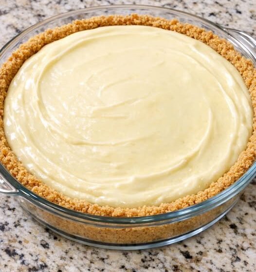 Pour the mixture into the graham cracker crust.