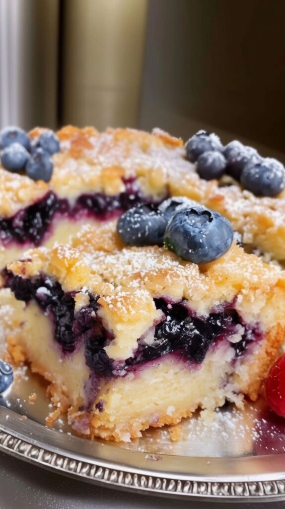 Soft, buttery cake bursting with juicy blueberries and topped with a sweet, crumbly streusel—Blueberry Buckle with Brown Sugar Topping is a timeless dessert that feels like home. The cake “buckles” as it bakes, creating a rustic, golden top with pockets of warm blueberries in every bite.