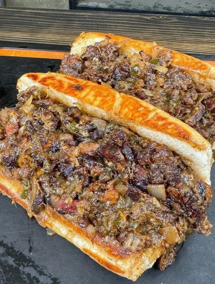 - Pile the cheesy brisket mixture into toasted hoagie rolls.