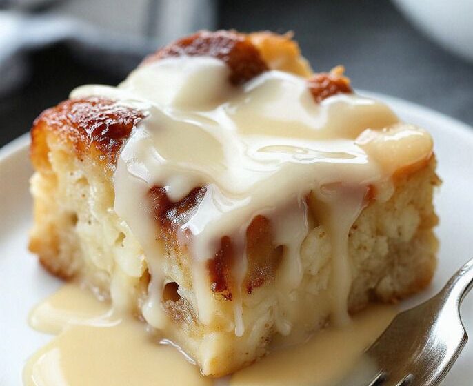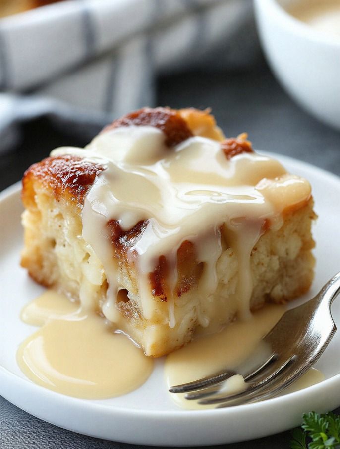 What truly elevates this dish is the vanilla custard sauce. Silky, warm, and gently sweet, it seeps into every bite of the pudding, turning a simple baked dessert into a restaurant-worthy comfort classic. Perfect for family dinners, holidays, or cozy evenings, this is a dessert that never goes out of style.