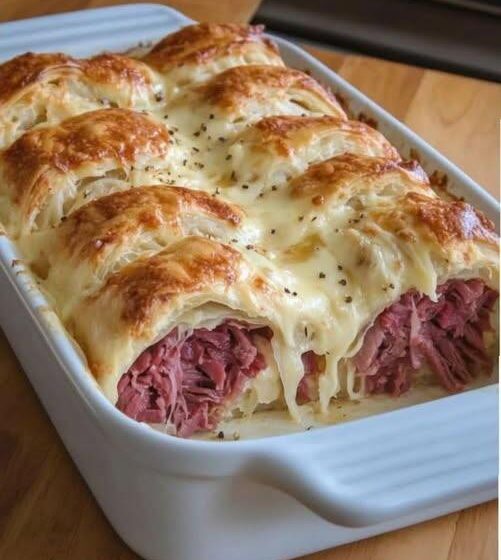 If you love the classic Reuben sandwich but want something quicker and more shareable, this Crescent Roll Reuben Bake is the perfect solution. Corned beef, sauerkraut, Swiss cheese, and Thousand Island dressing are all baked inside buttery crescent rolls—making it ideal for weeknights, potlucks, or casual gatherings.