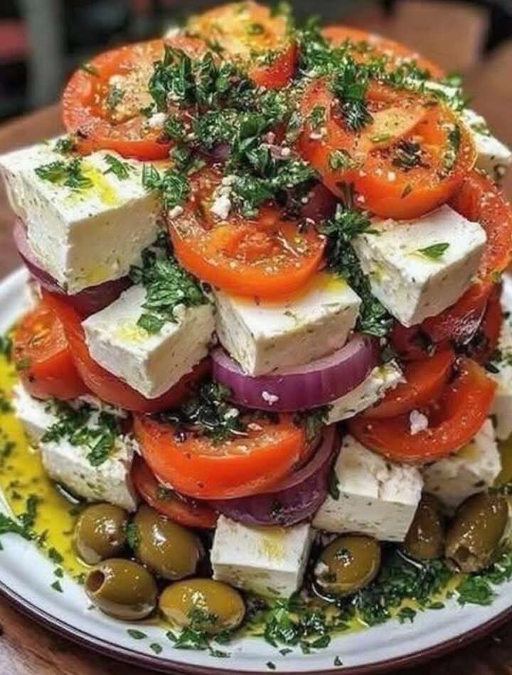 Looking for a salad thatās as beautiful as it is delicious? The Greek Feta Salad Tower is your go-to for a quick, healthy, and visually stunning meal. Layers of crisp vegetables, creamy feta, and a zesty Mediterranean dressing come together to create a low-calorie salad thatās perfect for lunch, brunch, or a light dinner. Easy to make, full of nutrients, and irresistibly fresh, this tower is proof that healthy eating can also be fun and elegant.