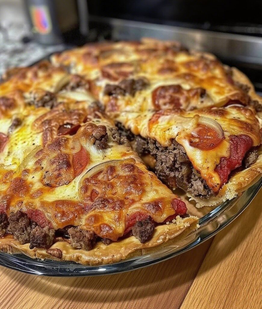 A comfort food dream come true — this dish combines seasoned ground beef, gooey melted cheese, zesty pizza sauce, and a golden biscuit or pie crust. Perfect for dinner, parties, or weekend cravings!