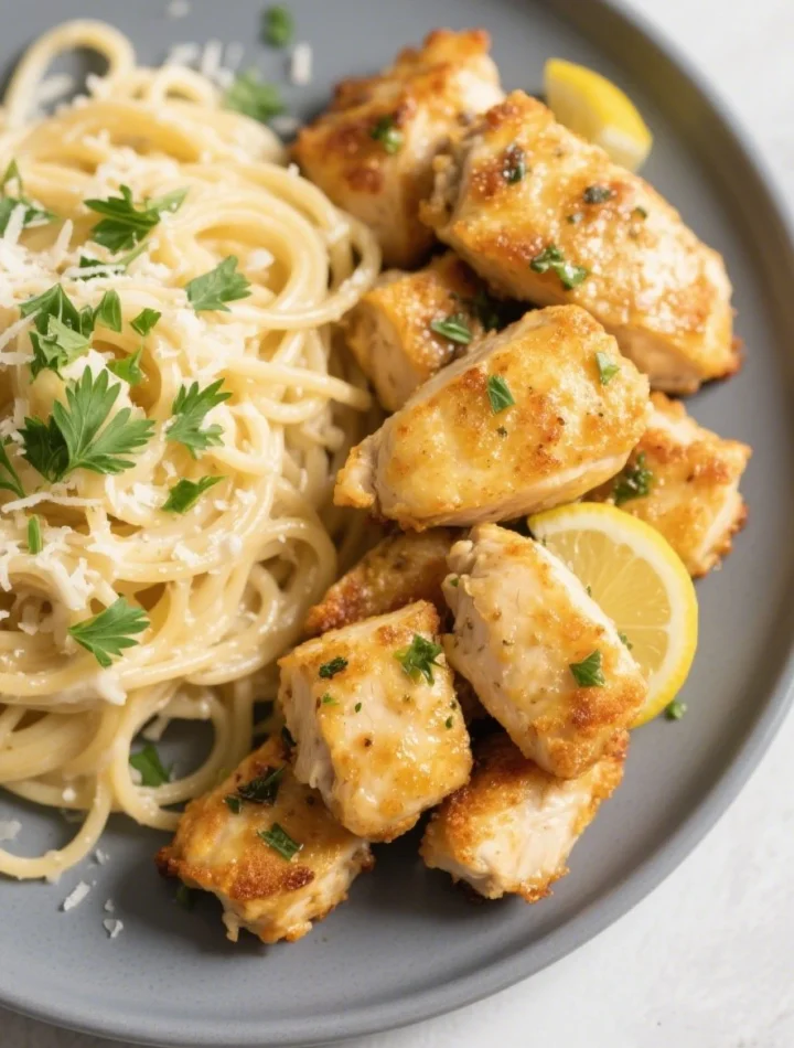 Looking for a rich, comforting dish with a zesty twist? This Lemon Garlic Butter Chicken with Creamy Parmesan Pasta brings together juicy, flavorful chicken bites with velvety noodles coated in a parmesan cream sauce. It’s the ultimate weeknight indulgence quick, satisfying, and full of bold, mouthwatering flavor.