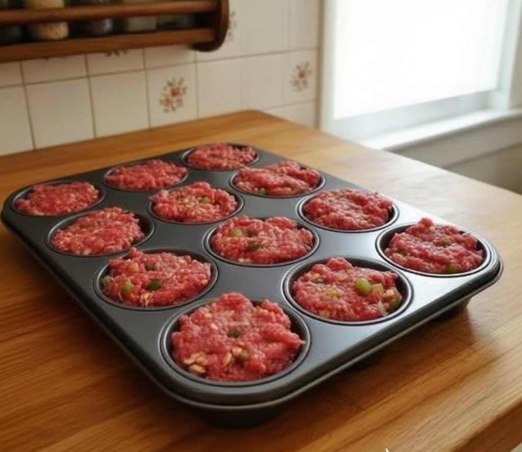 - Form Mini Meatloaves ā Divide mixture evenly among muffin cups, pressing lightly to shape.