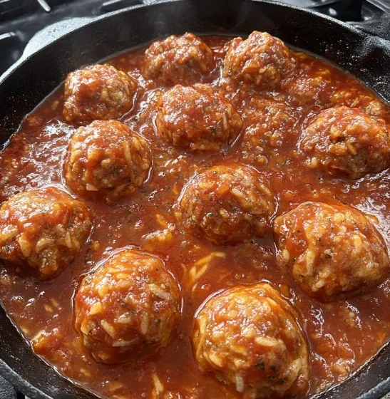 You’ll love this dish for its tender meatballs infused with rice and coated in a rich, savory tomato sauce.