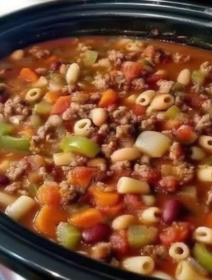 Pasta Fagioli (pronounced pasta fah-joh-lee) is a classic Italian comfort food that combines tender pasta, beans, vegetables, and ground beef simmered in a rich tomato broth. This cozy dish is perfect for a weeknight dinner and tastes even better the next day.