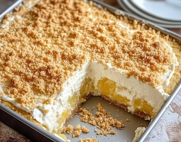 This Pineapple Delight Dessert is a cool, creamy, no-bake treat with a buttery graham cracker crust, a light cream cheese layer, and a sweet pineapple topping. It’s simple to make and perfect for gatherings, holidays, or warm-weather days.