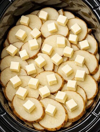 Lightly grease the inside of your slow cooker with butter or non-stick spray. This prevents sticking and ensures the potatoes lift out easily when serving.