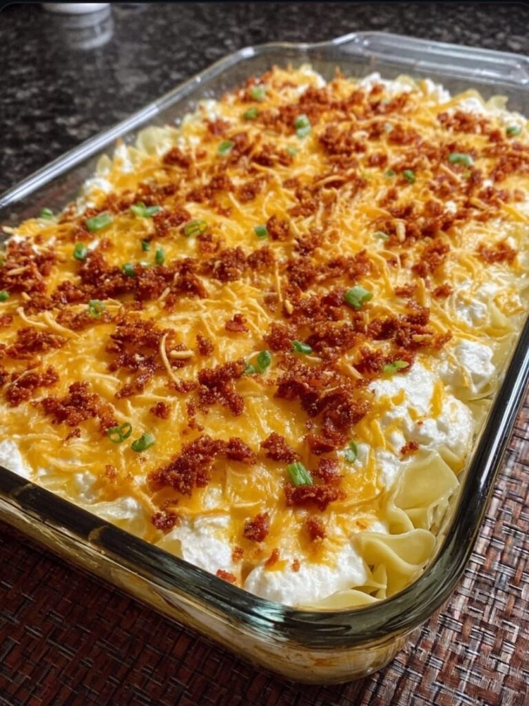 Creamy, cheesy, and topped with crispy bacon goodness, Warm Sunday-Style Dairyland Casserole is the ultimate comfort dish that feels like it came straight from grandma’s kitchen. This hearty bake combines tender noodles, rich creamy layers, and melted cheese into a warm, satisfying meal perfect for family dinners or cozy weekends.